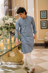 Denim Blue Printed Kurta with White Trouser
